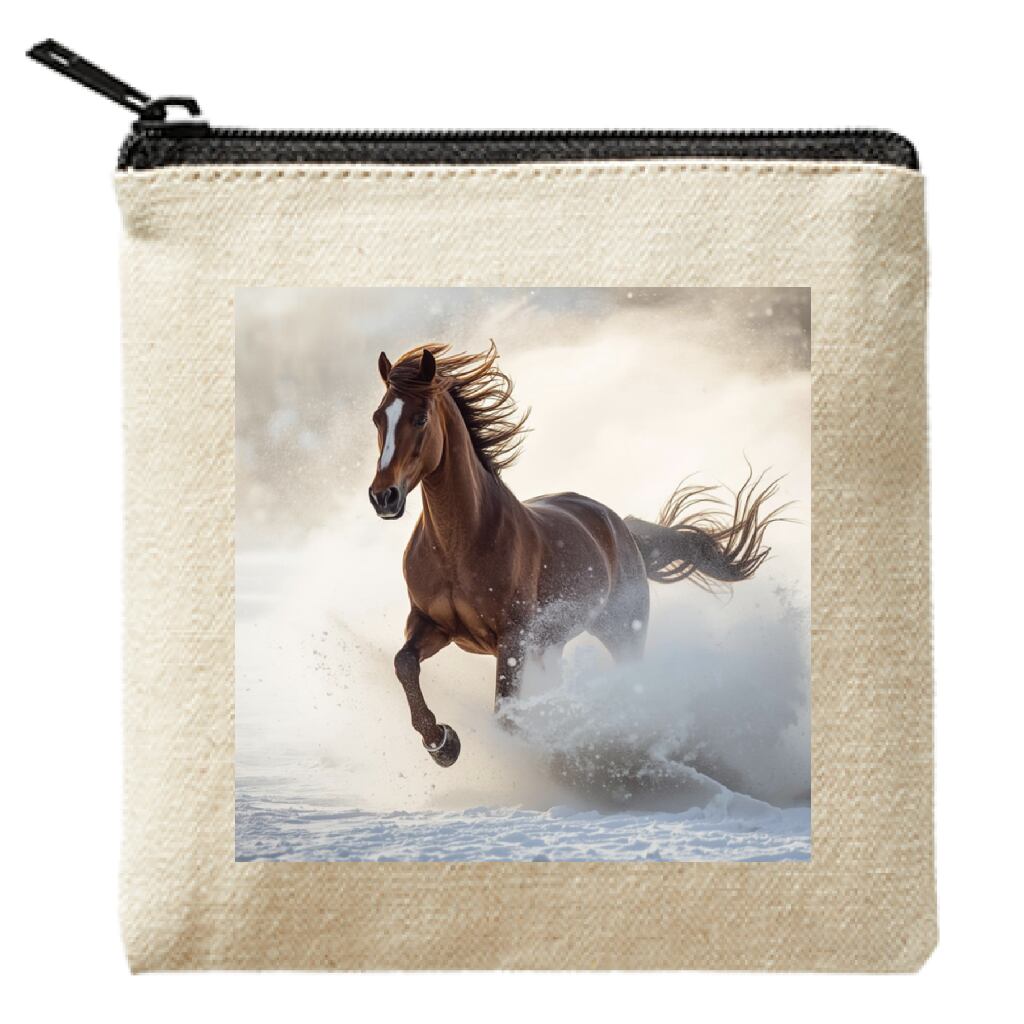 【キャンバスフラットポーチ☆雪を蹴る馬】ナチュラル